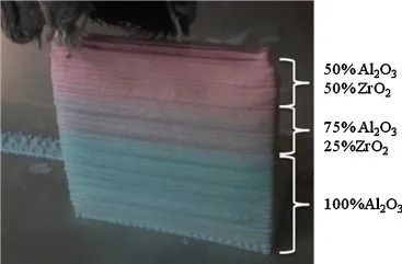 一种自制的测试棒,从100% Al2O3到50% Al2O3 + 50% ZrO2分级。